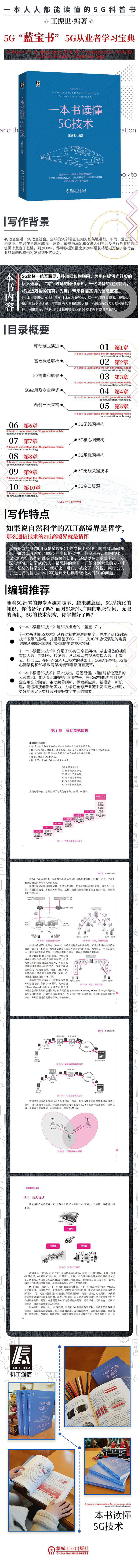 5G终将一统互联网、移动网和物联网,为用户提供光纤般的接入速率,“零”时延的操作感知,千亿设备的连接能力,将拉近万物的距离,为用户带来身临其境的信息盛宴。 《一本书读懂5G技术》采用从总体到细节的顺序提纲挈领地介绍了5G工程师需要掌握的基本概念和关键技术。从5G和LTE的对比中,本书梳理出技术发展的脉络,帮助读者了解技术继承点在哪里,技术突破点在哪里。本书尽量以图表的方式来阐述技术,观点清晰、信息密度高。在阐述5G的技术原理和技术特点的时候,尽量使用通俗、简洁的语言,总结了很多5G方面的打油诗、行业俗语,使读者阅读起来轻松愉快。 《一本书读懂5G技术》是5G技术的科普读物,适合5G项目管理者、营销人员、售前支持人员、工程服务人员和管理人员,也可以作为各类院校通信工程、网络工程、物联网和计算机等专业的5G技术教材或参考读物。