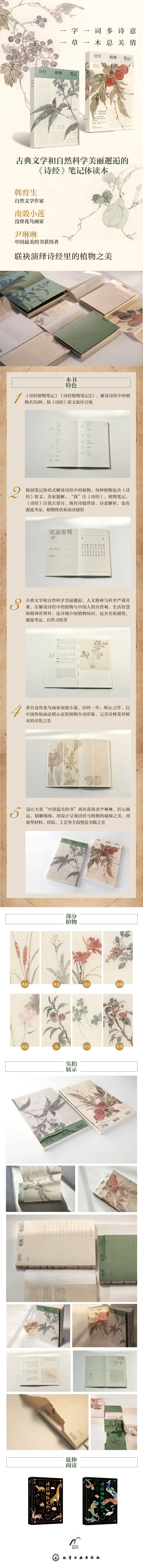 本书是一部介绍诗经里的植物的笔记体读本,每种植物包含《诗经》原文、杂家题解、“我”注《诗经》、植物笔记、《诗经》注我五部分,既有诗篇背景、诗意解析,也有源流考证、植物性状和读诗感悟,图文并茂,自然文学作家韩育生和没骨花鸟画家南榖小莲联袂演绎,发现诗经里的植物之美,领略古代中国人的自然观、生活智慧和精神世界的多样与丰饶。