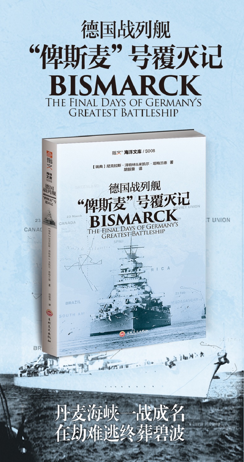 战列舰“俾斯麦”号(Bismarck)的军旅生涯异常短暂,其中在海上航行的时间只有区区九天,然而她所引发的关注热情却持续了半个多世纪。虽然她只有这一次战斗航行,但或许正是围绕在她身边的种种谜团,吸引着历史学家、职业军人和普通读者的好奇心。毫无疑问的是,“俾斯麦”号的吨位、航速、很好有效的装甲带和武器的威力与效率也进一步激发了人们对她的兴趣。随着这两个巨人在充满戏剧性的丹麦海峡(Denmark Strait)战役中相遇,一段扣人心弦的海战传奇便流传后世,至今仍令众多读者心驰神往。无线电静默被打破的原因是什么?为什么“俾斯麦”号出发前没有把燃油舱加满?在覆灭之战中,她究竟是不是在船员操作下自沉的?除此之外,还有众多未解之谜随这艘德国战列舰一起进入坟墓,至今仍令那些搜寻答案的研究者困惑不已。