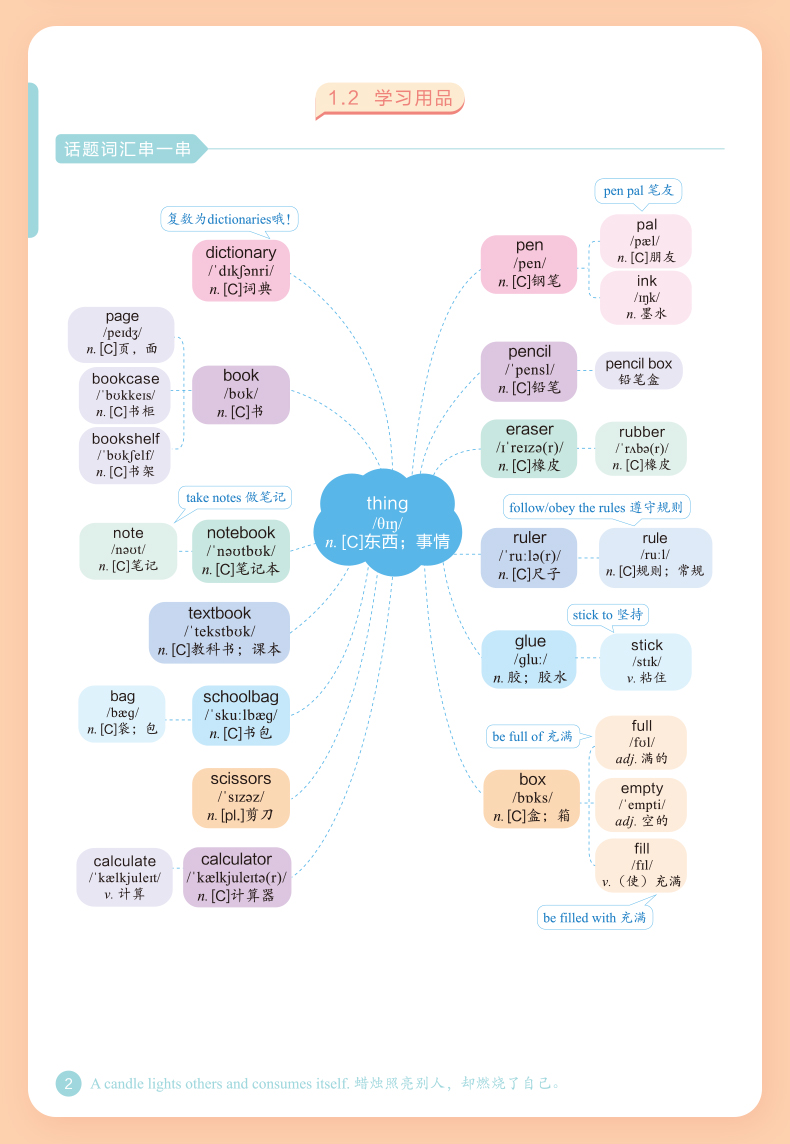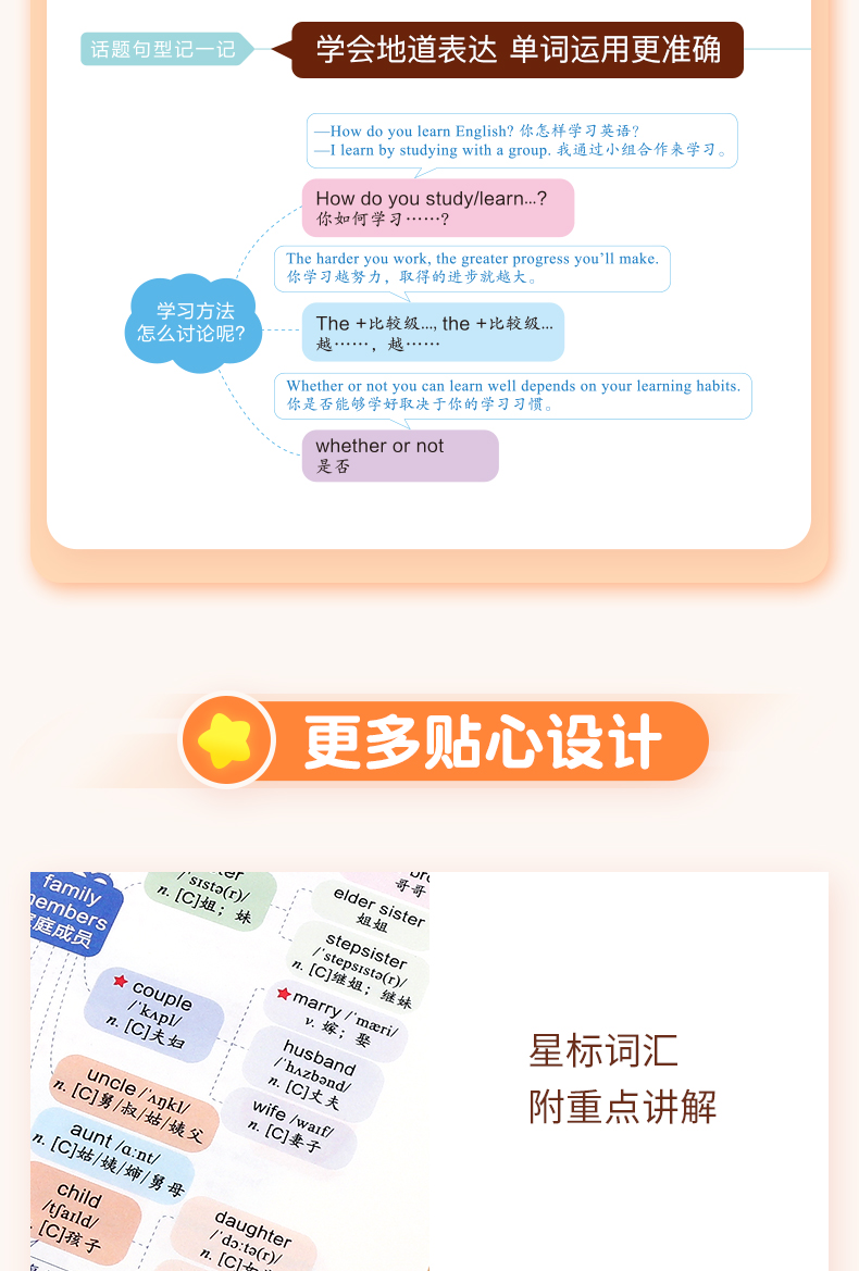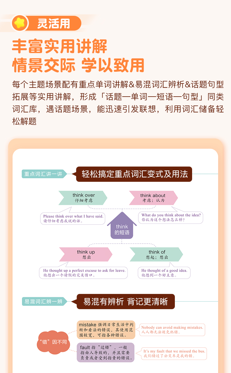 《脑图秒记初中英语2500词》由作业帮英语教研团队收集整理12个词汇话题并深度研究,结合学生熟悉60个日常生活场景,通过词汇场景联想记忆法,帮助学生在熟悉场景中积累单词,不难懂,不陌生,更牢固,更轻松。本书共收录初中英语核心词汇2500+,覆盖课标词1500个、教材差距词550+、拓展延伸词520+、高频短语1100+、经典句型260+,带学生轻松hold住中考脉络。每个主题场景配有重点单词讲解&易混词汇辨析&话题句型拓展等实用讲解,解决小学阶段英语单词的记背练用等全部问题。各版本教材通用,配有外教音频伴读,带你轻松背单词,搬走英语学习的绊脚石!