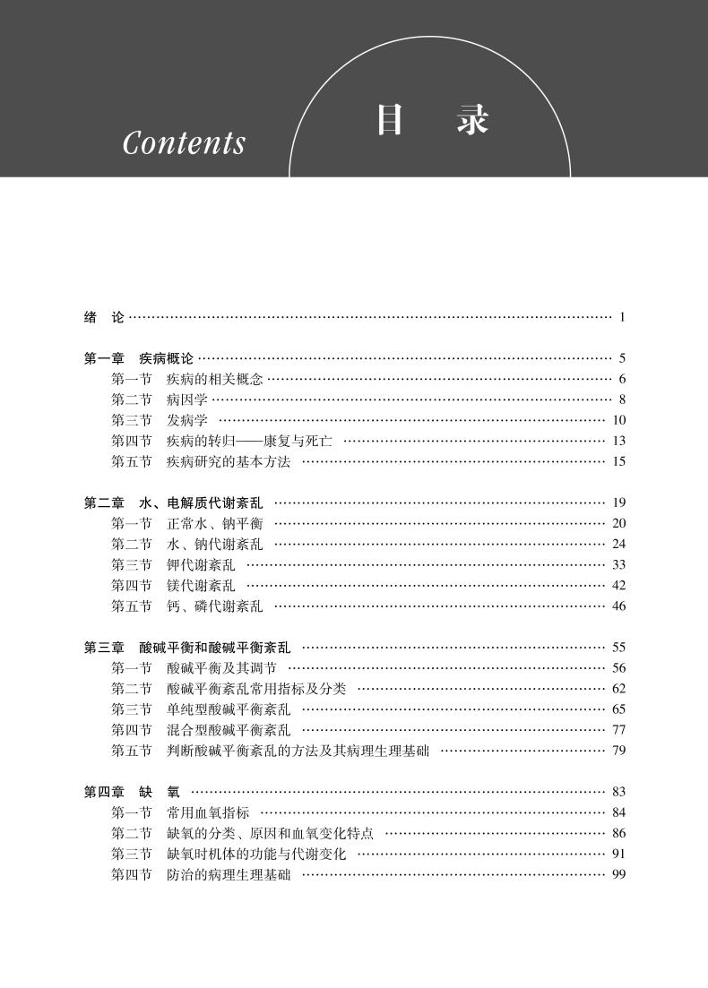 本教材内容以病理生理学的基本病理过程为主,包括疾病概论、水电解质代谢紊乱、酸碱平衡和酸碱平衡紊乱、缺氧、发热、应激、休克、凝血与抗凝血平衡紊乱、缺血-再灌注损伤、糖代谢紊乱、脂代谢紊乱、细胞信号转导异常与疾病、细胞增殖和凋亡异常与疾病、多器官功能障碍、疾病治疗药物药理学总论等共15章内容。