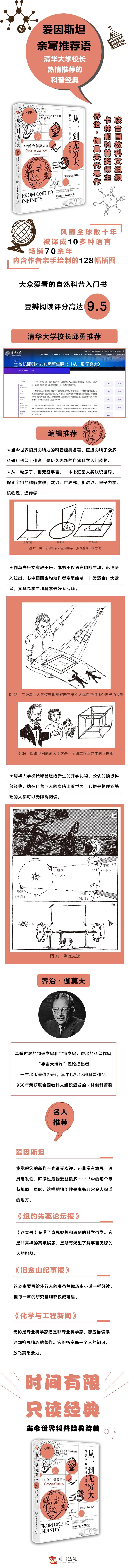 ★当今世界颇具影响力的科普经典名著,直接影响了众多科研和科普工作者,是历久弥新的自然科学入门读物。★从一粒原子,到无穷宇宙,一本书汇集人类认识世界、探索宇宙的精彩发现:数论、世界线、相对论、量子力学、核物理、遗传学……★伽莫夫行文寓教于乐,本书不仅语言幽默生动,论述深入浅出,书中插图也均为作者亲笔绘制,非常适合广大读者,尤其是学生和科学爱好者阅读。★清华大学校长邱勇送给新生的开学礼物,公认的很好科普经典,站在科普巨人的肩膀上看世界,即便是物理零基础的人都可以无障碍阅读。