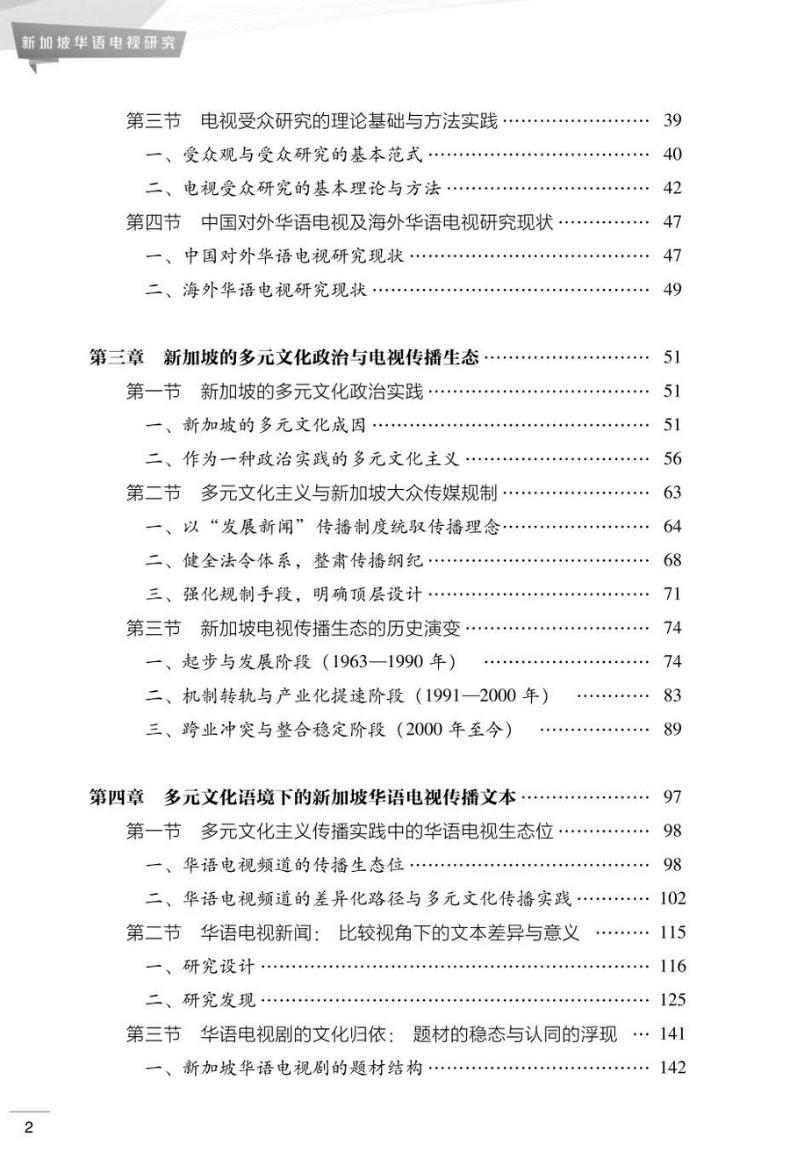 本书对新加坡电视传播生态现状及成因进行梳理的同时,重点将研究对象聚焦于华语电视频道。借鉴英国文化研究学派接受分析的理论框架与研究范式,确立了“文本生产”(编码)与“受众解读”(解码)两个较为宏观的分析向度。在此基础上导入深度访谈法,将新加坡华语电视受众分为本地华族与中国新移民两大群体,借助对不同年龄段、不同职业、不同性别受访对象的半结构深度访谈,分析新加坡华语电视受众的收视习惯与解读策略。