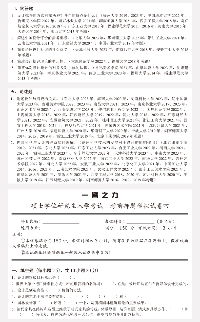 《设计学概论(湖南科技版)考硏核心笔记、知识点精讲精练》由一臂之力编
