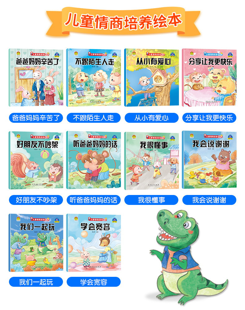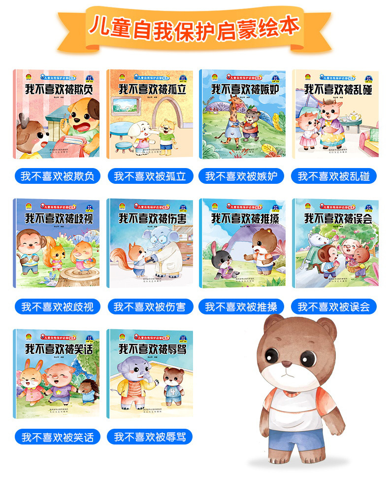 - 颜色: 【全10册】儿童自我保护启蒙绘本(书号:9787551322638);【全10册】儿童逆商培养绘本(书号:9787539840949);【全10册】儿童好习惯培养绘本(书号:9787539876955);【全10册】儿童情绪管理绘本(书号:9787539840925);【全10册】儿童性格培养绘本(书号:9787539840956);【全10册】儿童情商培养绘本(书号:9787539893846)