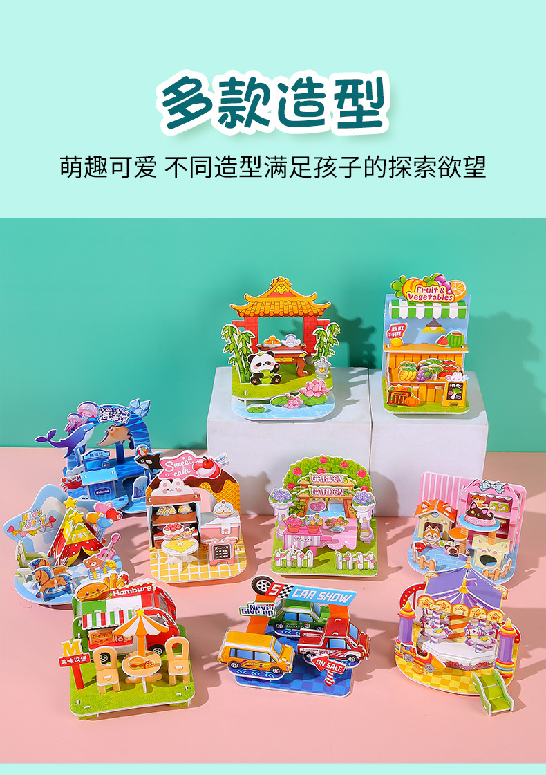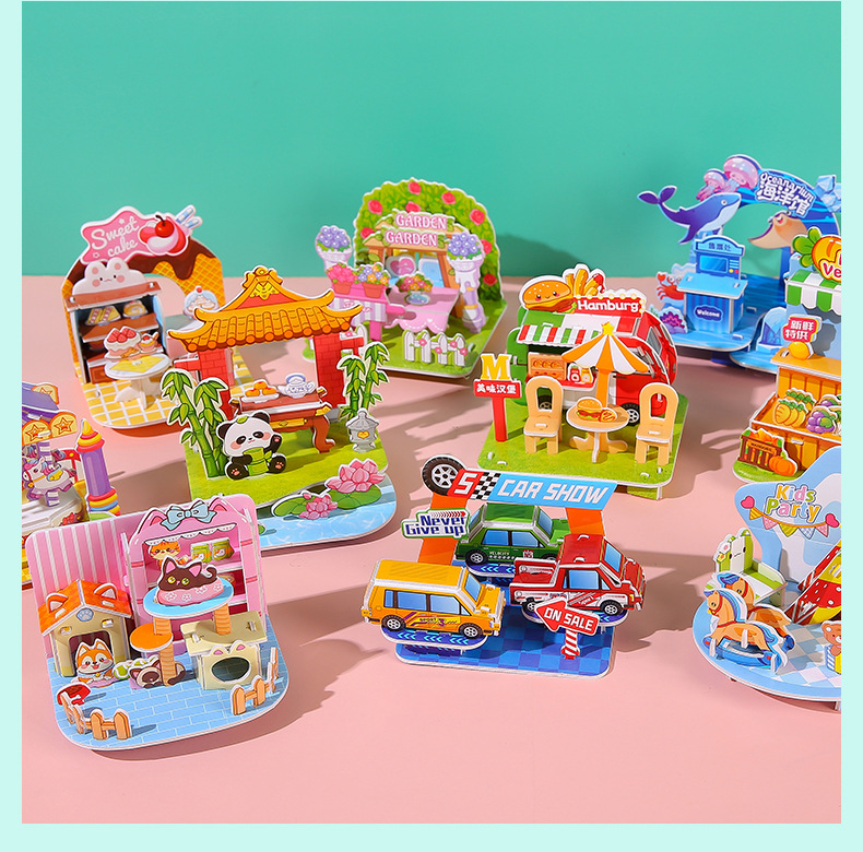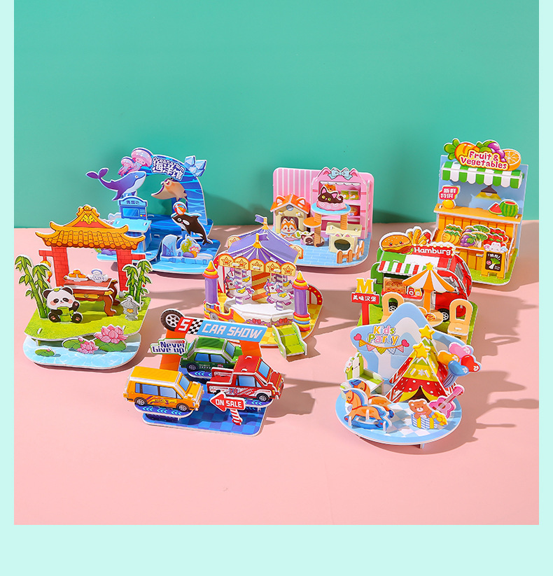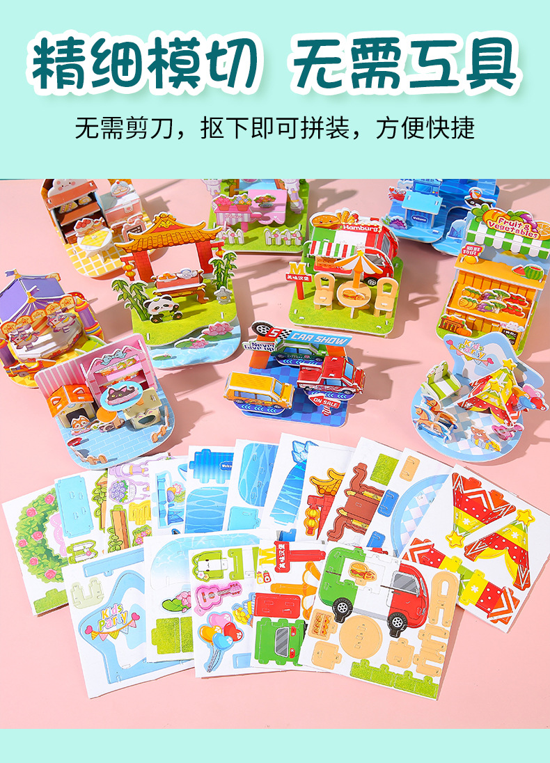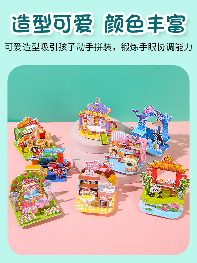 3D立体拼图卡学生DIY手工建筑屋益智拼图儿童3-6岁早教摆地摊玩具