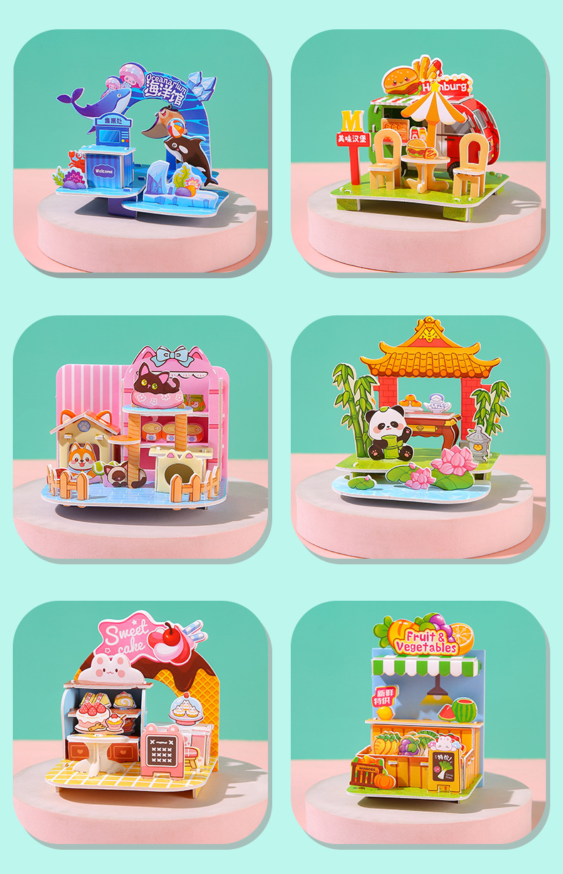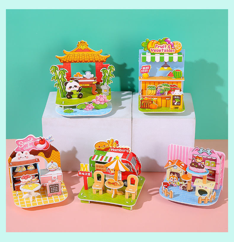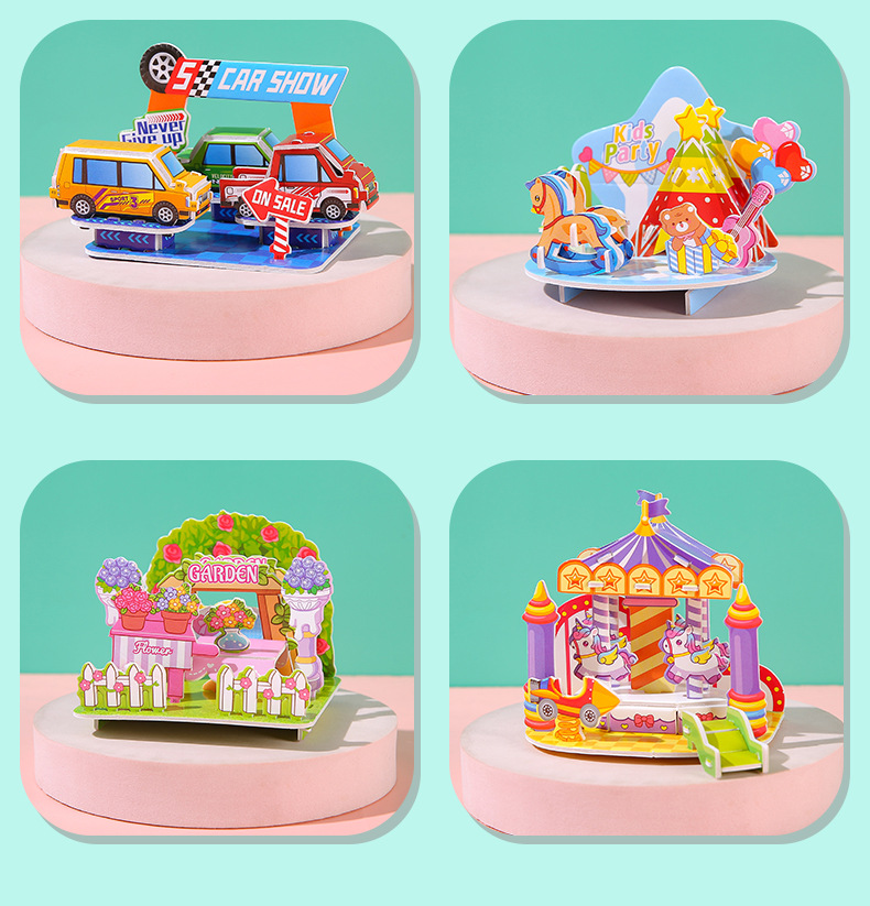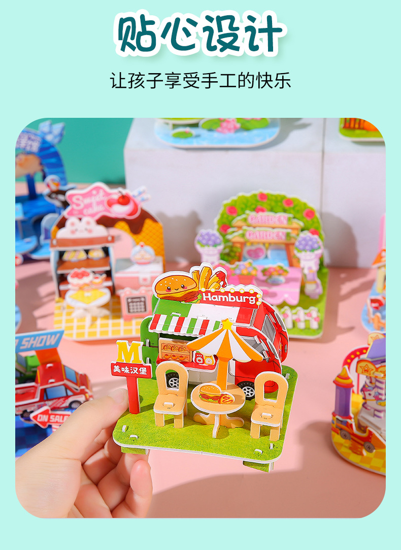 3D立体拼图卡学生DIY手工建筑屋益智拼图儿童3-6岁早教摆地摊玩具
