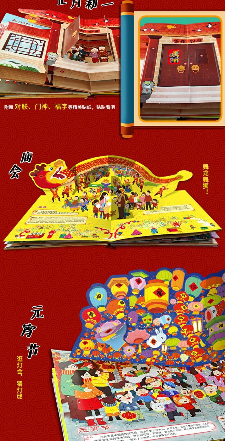 2024年欢乐中国年传统节日立体书礼盒装儿童硬壳绘本春节团圆故事