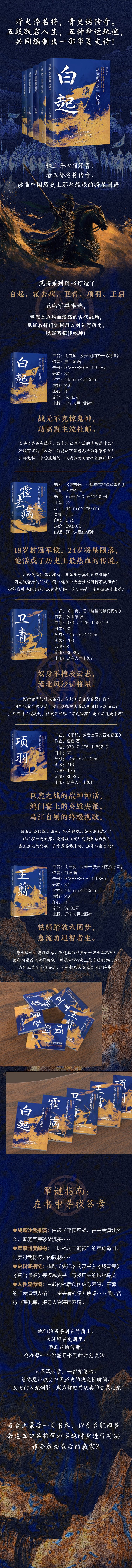 卫青的一生曲折而又传奇,他从放羊娃到公主的骑奴,最终经历种种困难成为有勇有谋的大将军。他是在汉匈战争中汉朝反败为胜的重要人物,与匈奴七战七胜,为汉朝北部疆域的开拓做出重大贡献。而卫青本人一生淡泊名利,居功而不自傲。本书以卫青的视角,展现2000多年前的那段波澜壮阔的历史,感受卫青身上不畏挫折、自强不息的精神,以及宽广的胸怀与气度;同时还可以深入了解汉武帝的雄才伟略以及汉与匈奴的关系。