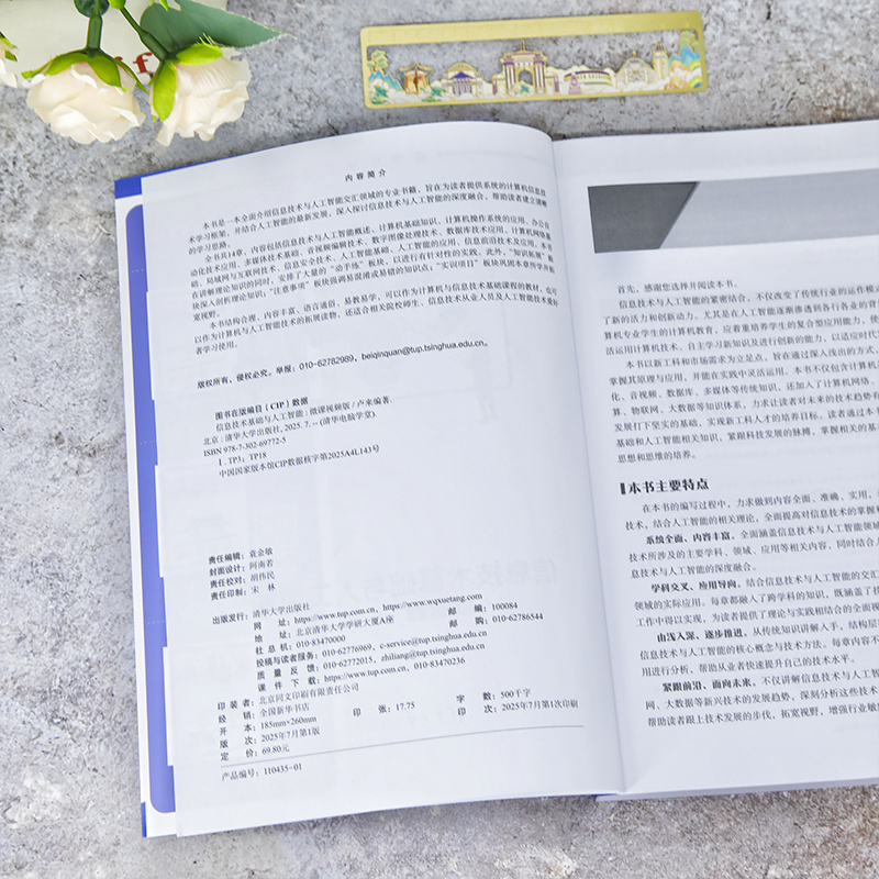 本书是一本全面介绍信 息技术与人工智能交汇领域 的专业书籍,旨在为读者提 供系统的计算机信息技术学 习框架,并结合人工智能的 最新发展,深入探讨信息技 术与人工智能的深度融合, 帮助读者建立清晰的学习思 路。 全书共14章,内容包括 信息技术与人工智能概述、 计算机基础知识、计算机操 作系统的应用、办公自动化 技术应用、多媒体技术基础 、音视频编辑技术、数字图 像处理技术、数据库技术应 用、计算机网络基础、局域 网与互联网技术、信息安全 技术、人工智能基础、人工 智能的应用、信息前沿技术 及应用。本书在讲解理论知 识的同时,安排了大量的“ 动手练”板块,以进行有针 对性的实践。此外,“知识 拓展”板块深入剖析理论知 识;“注意事项”板块强调易 混淆或易错的知识点;“实 训项目”板块巩固本章所学 并拓宽视野。 本书结构合理、内容丰 富、语言通俗、易教易学, 可以作为计算机与信息技术 基础课程的教材,也可以作 为计算机与人工智能技术的 拓展读物,还适合相关院校 师生、信息技术从业人员及 人工智能技术爱好者学习使 用。