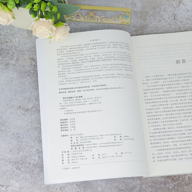 本书以典型工作任务为 载体,提炼旅游人才所需的 职业能力;以导游员实际工 作任务为核心,确定模块提 升、螺旋递进的教材结构体 系;以金牌导游炼成记为主 线,设置博识筑基、实战演 练、匠心精研、岗课融合四 大教学模块,旨在培养具备 “匠心服务”精神、懂创意、 善讲解、会管理的旅游界高 素质技能型精英人才。 本书包括实用性强的四 大模块、10个学习型项目、 59个学习任务。每个学习任 务包括:引言、情境导入、 任务描述、相关知识、操作 示例、动笔创作、角色练习 等。每个学习任务中还包含 相应的交互式课件、在线课 堂,体现多形式、多维度、 多场景、多角色等特点。本 书还将业内的前沿技术和最 新成果纳入课程体系,并融 入行业最新的发展动态和前 沿理念,帮助学习者紧跟行 业发展趋势,为未来的职业 生涯做好准备。 本教材是浙江省高职教 育“十四五”教学改革项目“ 基于核心素养的旅游国际化 精英人才培育路径研究与实 践——以旅游管理中外合作 专业为例”(项目编号: jg20230193)、浙江省第三 批在线精品课程、2024年 浙江省教育厅高等学校访问 学者教师专业发展项目(项 目编号:FX2024164)的研 究成果之一。 本书既可以作为高职高 专院校旅游管理专业教材, 也可以作为导游、旅游规划 、智慧景区开发与管理、酒 店数字化运营等专业的教材 ,以及全国导游人员资格考 试的参考书。本书还可供有 志于从事旅游工作的专业人 士、管理人员学习、参考。