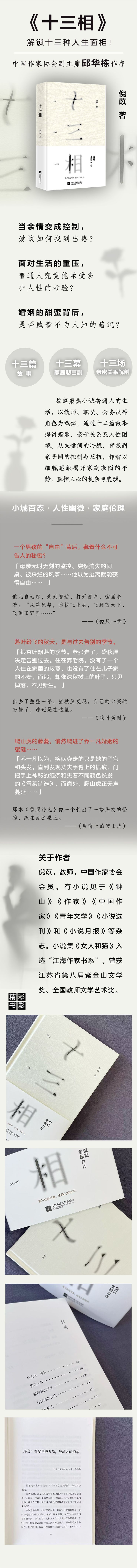 《十三相》一部短篇小说集,收录了十三篇以家庭伦理和人性探索为主题的短篇小说。作品聚焦于小城生活中的普通人物,如教师、公司职员、公务员等,通过他们的婚姻、亲子关系以及家庭内部的矛盾,揭示了人性的复杂性和生活的多面性。