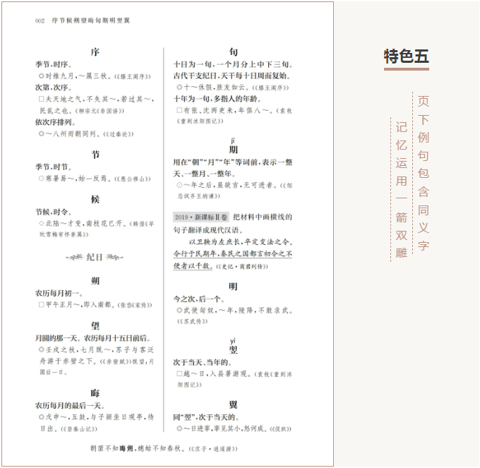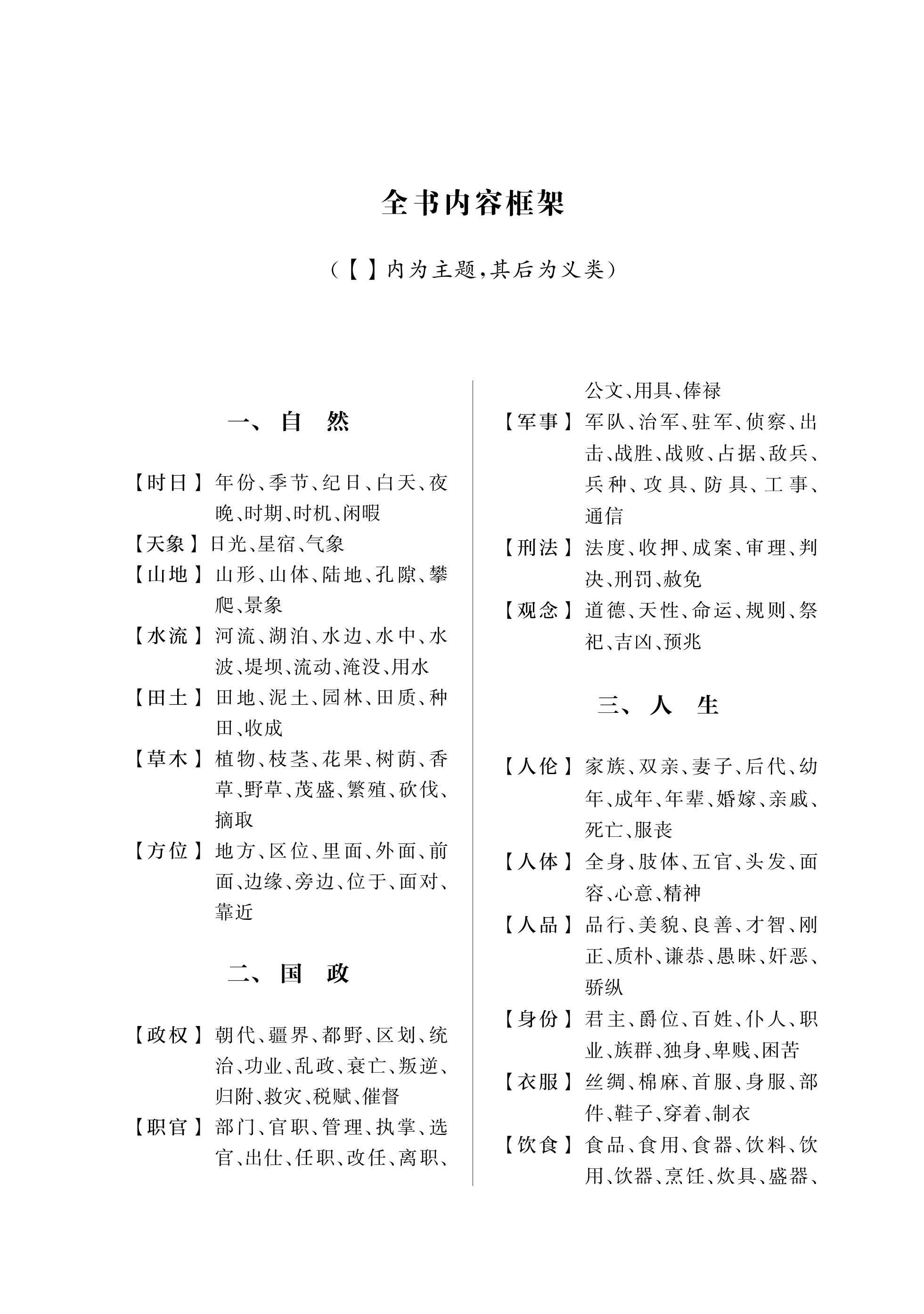 编写说明001 一、 自然 时日 |年份|岁稔载春秋001 |季节|时序节候001 |纪日|朔望晦旬期明翌翼来002 |白天|日昼夙蚤旦朝晓晞曙003 |夜晚|夕昏暝晡暮晚宵更鼓003 |时期|时辰日岁秋际中间世造004 |时机|时机会当便因005 |闲暇|闲暇遑006 天象 |日光|景曦晖曜006 |星宿|辰曜宿分007 |气象|气霄霏霖霰霁露烟凇007 山地 |山形|阿陵阜岳岭丘峦岑008 |山体|巅峰巘嶂岩岫峦冈崖堪 壁麓谷峡壑009 |陆地|原野隰滩010 |孔隙|穴窍窦窾罅郤隧坎坳010 |攀爬|攀援缘011 |景象|胜景观概色光011 水流 |河流|泉源流川溪涧012 |湖泊|泽薮潭渊溟塘坳陂潦013 |水边|滨涯崖泮浦涘湄汀皋 上曲013 |水中|洲渚沚屿坻峡014 |水波|澜涛涟漪濑湍涓015 |堤坝|防障陂015 |流动|灌沃泻注激漱迸漫溢 沥漉浥渐016 |淹没|没汩溺襄017 |用水|濯浣沐浴汲引浚决017 田土 |田地|畴野甸畦垄畎亩018 |泥土|壤块砾埴淖019 |园林|园圃囿苑019 |田质|膏腴肥荒秽芜草020 |种田|垦耕艺莳培耔耘膏020 |收成|登稔获年穰凶侵饥馑021 .......... 六、 虚词 介词 |在(地)|于乎自以当从向之 焉411 |在(时)|于乎以当方412 |从(地)|于自由道412 |从(时)|自从于由412 |到(地)|于至诸焉413 |到(时)|及至比洎越迟逮迨 达迄讫得抵投于施 居413 |对|从就与为于乎焉诸之414 |比|乎于与焉415 |同|与共及以415 |用|以将举416 |被|为见于416 |凭借|因缘用由以417 |根据|与随即以因由从417 |顺着|顺沿随从傍缘扶遵循寻 趁418 |因为|以用坐将缘自由于因为419 连词 |并列|而且乃终载以及洎若如 与共并兼惟更将复420 |修饰|以而则422 |转折|然则而且乃若422 |承接|乃便而以厥斯遂则即却 焉423 |结果|因而故固乃以则424 |原因|因为用坐从以缘由盖425 |目的|而以426 |假设|如若令今向苟设试使倘 傥但当藉第即将果必诚 信审微其则而426 |让步|尚且犹则虽即就纵无429 |递进|以而又抑矧况且430 |选择|抑其将且430 语气词 |感叹|夫也乎焉哉欤兮矣已431 |疑问|乎焉也哉者则与欤耶 邪夫否不无未诸432 |反问|乎为焉也哉耶邪与欤 者433 |停顿|乎也兮思者其434 |陈述|也者焉矣已耳尔惟434 |祈使|也乎矣哉来435 |揣度|乎与欤耶邪436 助词 |结构|之所者436 |发语|盖夫惟437 |时态|将之得却取437 |语缀|然若如乎焉者438 例句出处表439 例题参考答案453