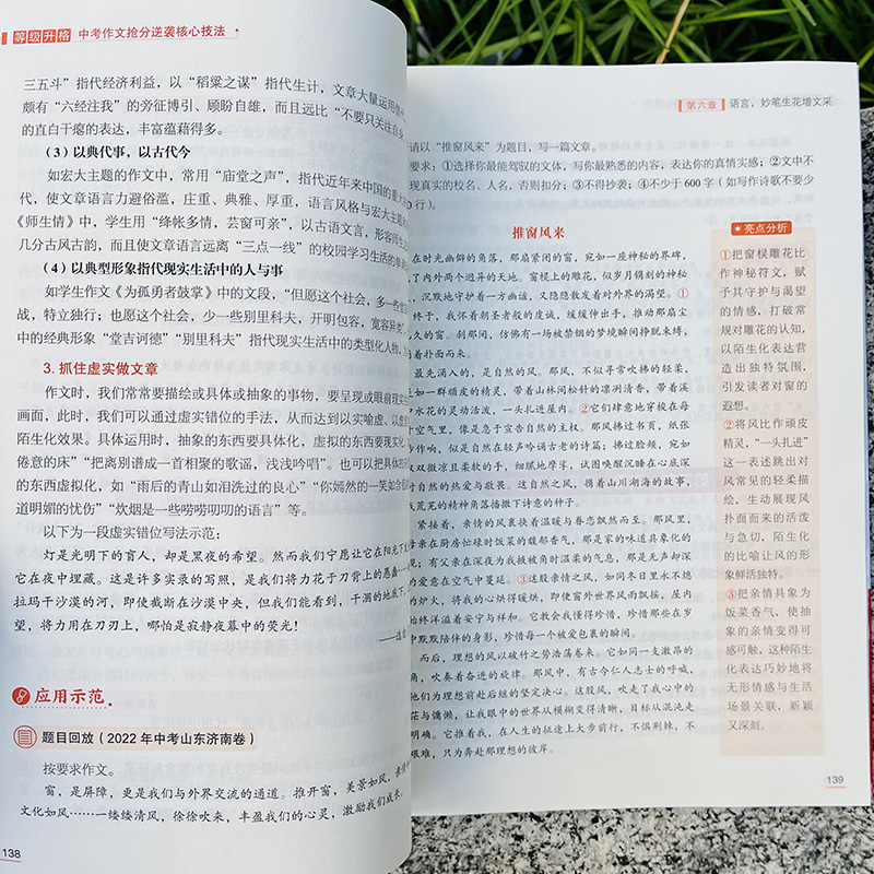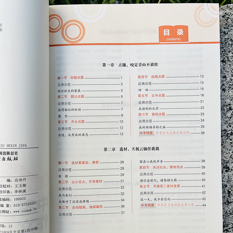 \\\\\\\"语文特级教师梳理近5年全国各地中考作文真题,在详解命题规律的基础上提炼十大热考母题,十大热考母题覆盖中考常考主题。每个热考母题下设若干道典型子题,其中既有近三年的各地中考真题,也有各地的高质量模考预测题,让学生备战中考有的放矢,事半功倍。 每道子题都进行详细的题目解析和思维发散,帮助学生从多角度审题立意,提升学生的作文思维,从而在考场上能够快速找到新颖的、容易打动阅卷老师的高分立意。高质量的范文附有名师的精批精评,明确得分点,拆解得分要领。 每道母题后面还附有令人惊艳的提分金句和让人眼前一亮的好开头、好结尾,助力学生在中考作文中斩获高分。\\\\\\\"