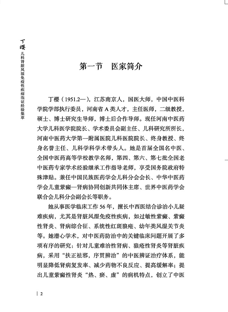 丁樱儿科肾脏风湿免疫性疾病临证经验集萃