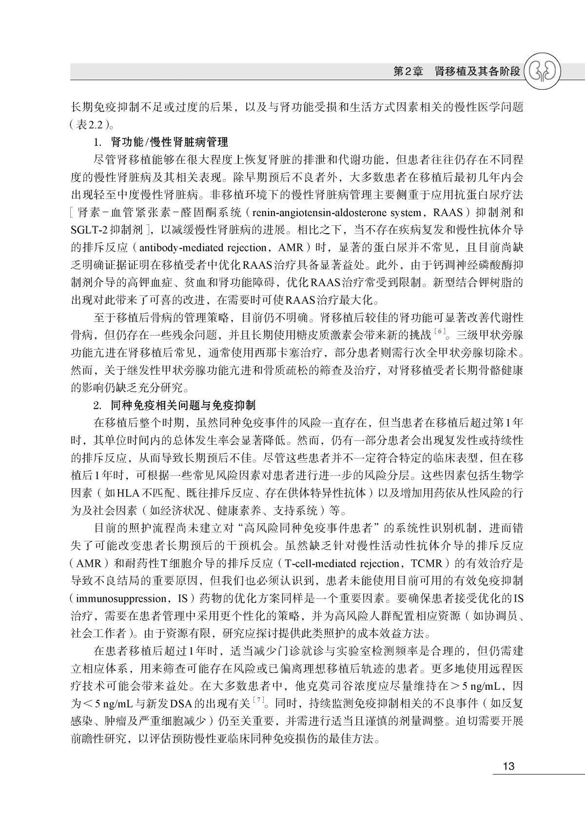详细介绍了与肾移植相关的主题,包括目前的存活率、肾移植后的阶段、移植健康、目前的免疫抑制管理以及同种免疫损伤,例如早期和晚期 T 细胞和抗体介导的排斥反应。各种非同种免疫因素,例如移植后感染、心血管疾病和癌症,在专门章节中进行了讨论。各章专门讨论影响肾移植的心理和社会因素,随后是儿科肾移植和多器官移植的专门章节。最后一章讨论了移植耐受性,结论总结了所有章节并强调了可能成为肾移植领域游戏规则改变者的潜在新进展。