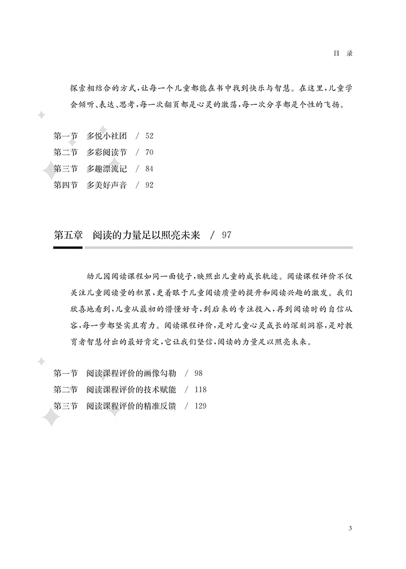 本书全面而细致地阐述了幼儿园悦读课程设计与实施的多样化路径与实践方法,旨在为读者呈现一个既富有理论深度又具备操作指导性的框架体系。幼儿园悦读课程的核心目标在于精心营造一个充满温馨爱意与无限想象的阅读环境,让每一位儿童都能在这个由文字与图画巧妙交织而成的奇妙世界中自由翱翔,探索知识的奥秘,激发创造力的火花。在这一课程中,阅读不再仅仅局限于单纯的知识传递过程,它更是一种深刻的情感交流与心灵的深度启迪。孩子们在悦读的过程中,不仅吸收了书本中的智慧与养分,更重要的是,他们学会了倾听自己内心的声音,学会了用稚嫩却真挚的心灵去感受文字背后的情感与哲理,从而促进了其情感世界的丰富与成熟。
