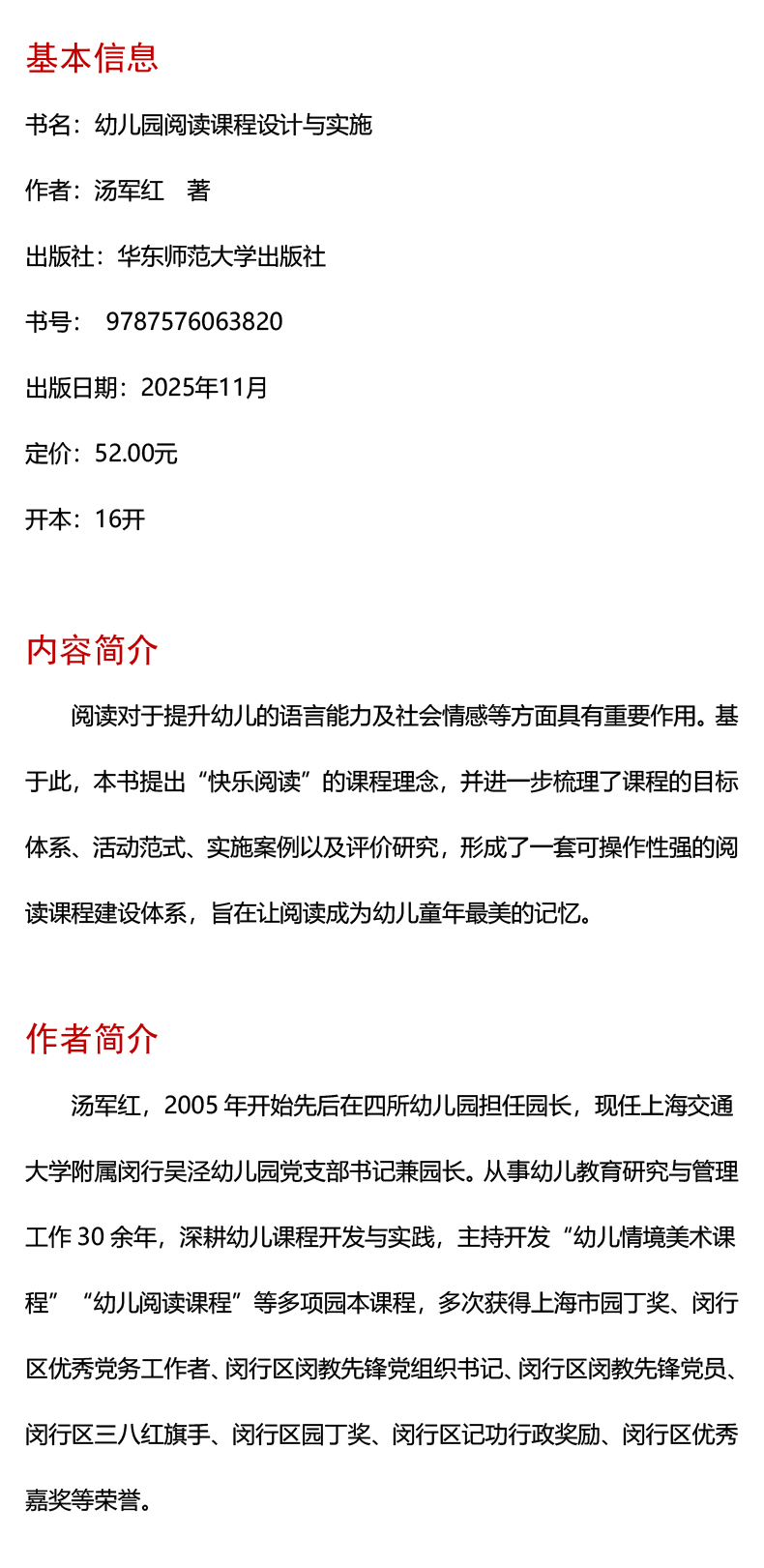 汤军红,上海交通大学附属闵行吴泾幼儿园园长,中学高级教师。撰写的《多悦之声 传递向上的力量》被评为2024年闵行区教育系统“七一”系列选树学校党建与教育教学、德育和思想政治工作深度融合特色案例。